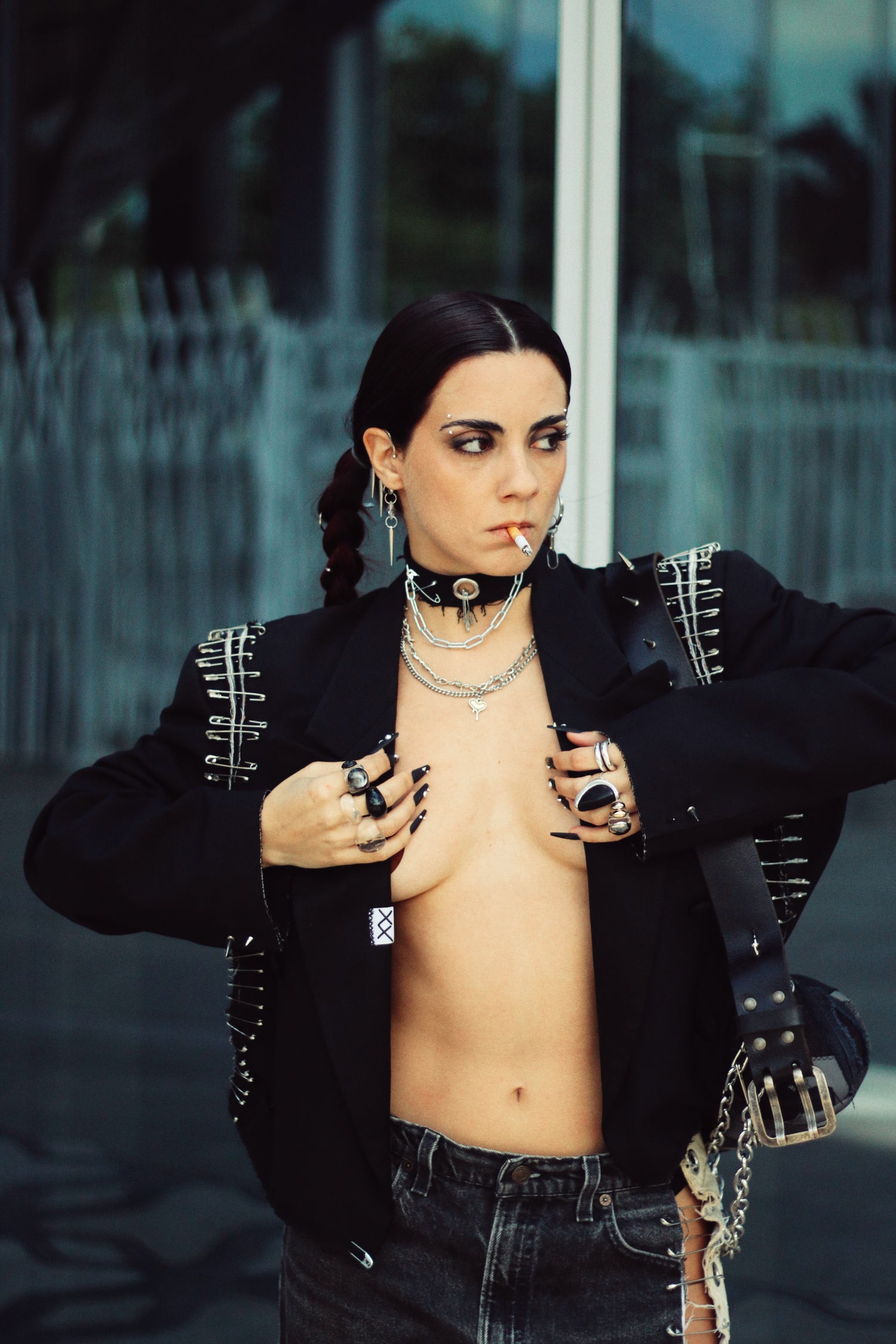 Make a statement with Nena’s reworked blazers — a bold mix of punk-inspired design and sustainable fashion. Each piece is carefully upcycled, featuring unique details like cutouts, safety pins, chains, and spikes for an edgy, one-of-a-kind look.