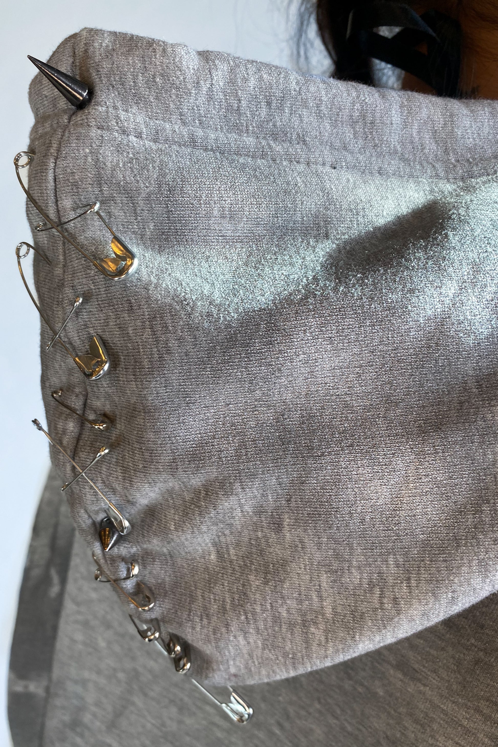 - Punk-inspired details: Safety pins and spikes on the hood for an edgy, rebellious look.