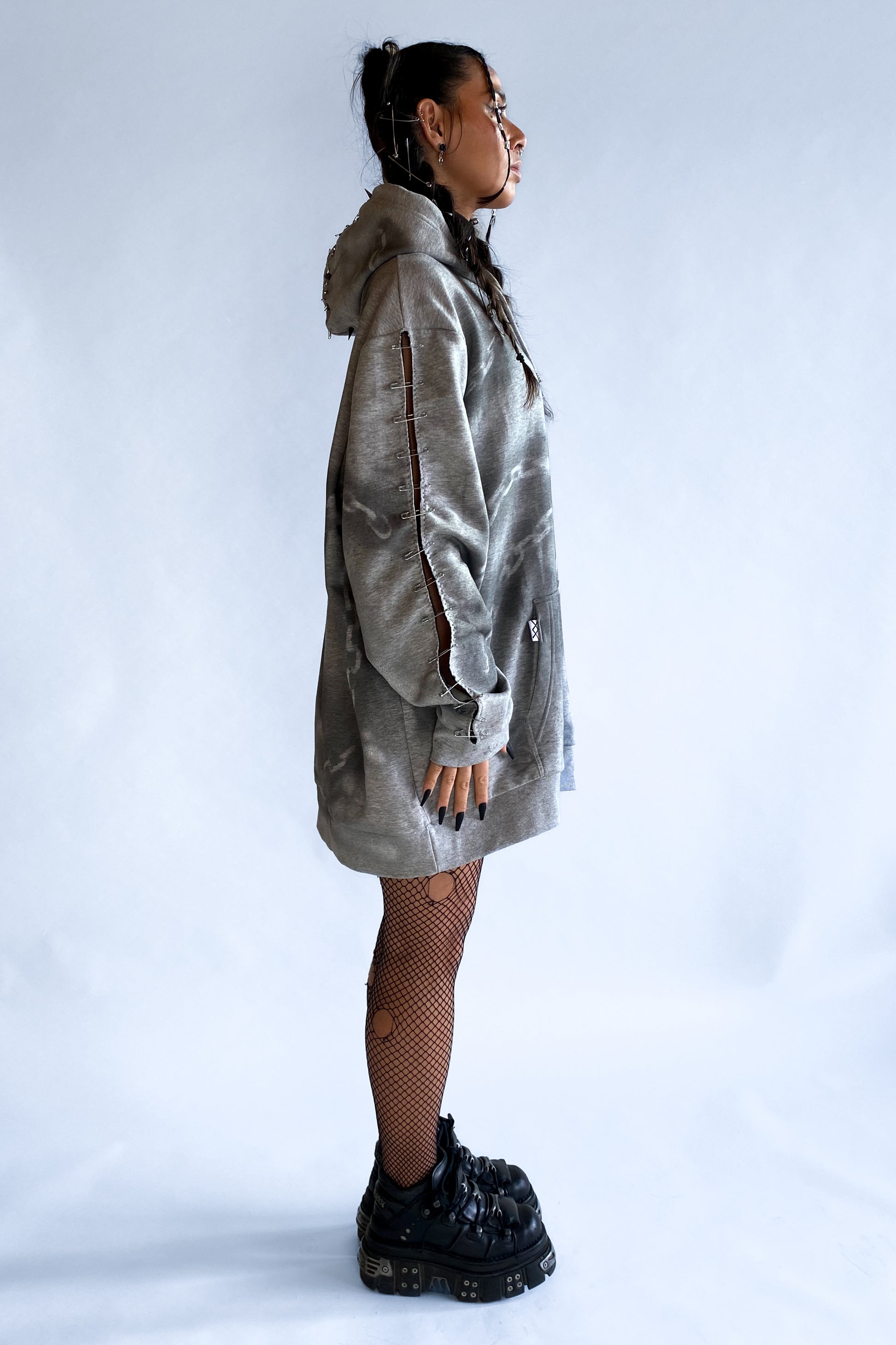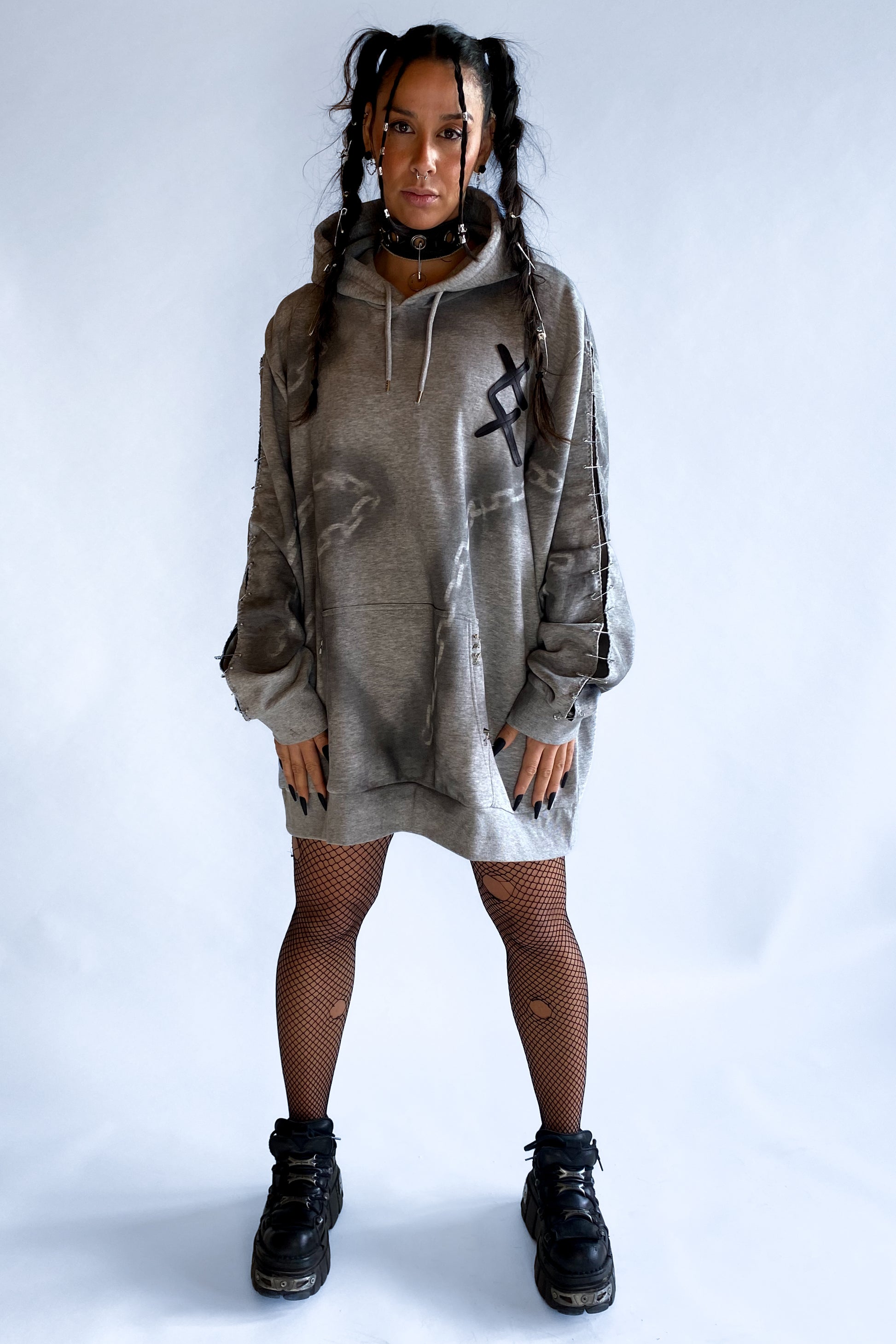 "Don't get chained up" Upcycled Deadstock Grey/dark grey Hoodie