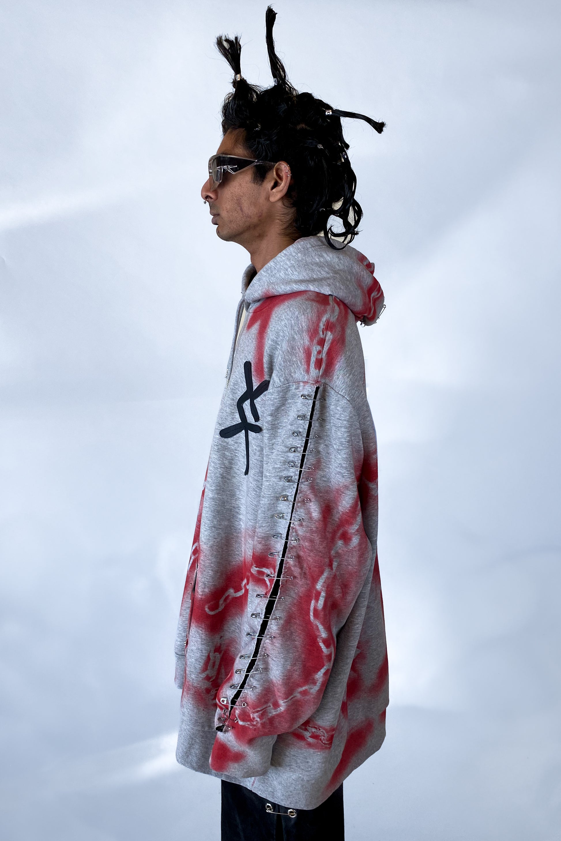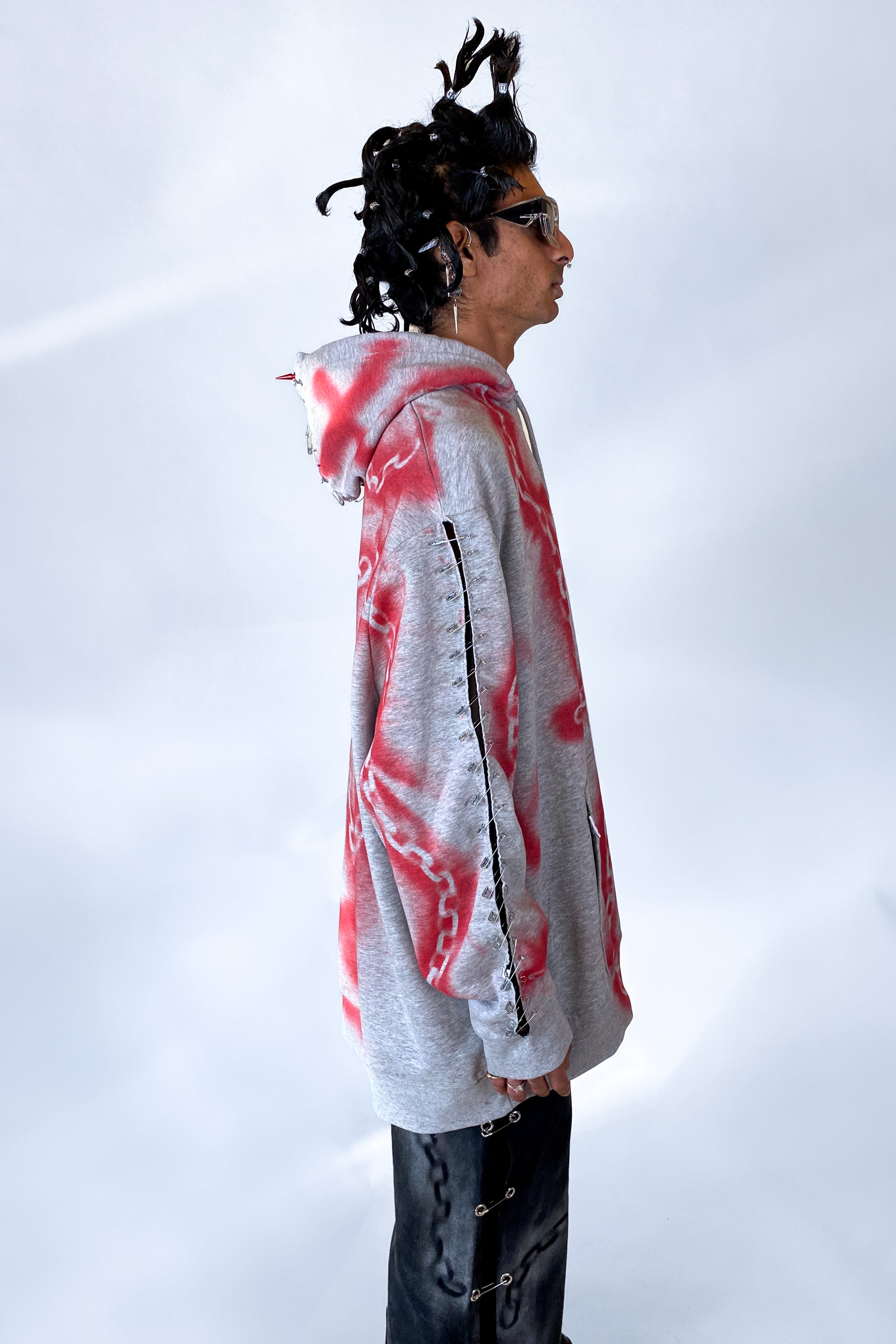 Each hoodie is hand-customized and spray-painted, ensuring that no two are exactly alike. Crafted from high-quality upcycled deadstock fabric, this hoodie gives new life to surplus materials that might otherwise go to waste. The grey color offers a versatile base, making it easy to pair with anything in your wardrobe while still standing out with its unique details.