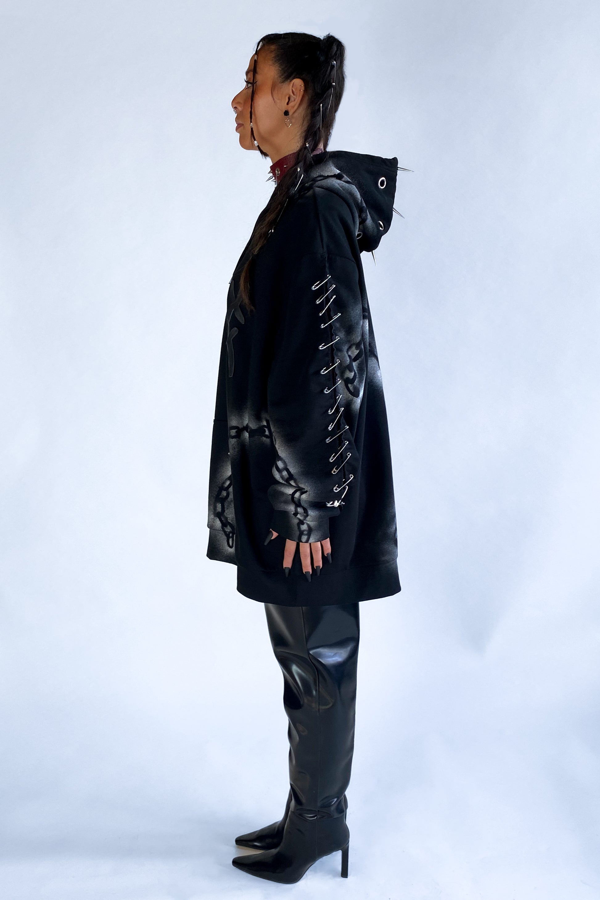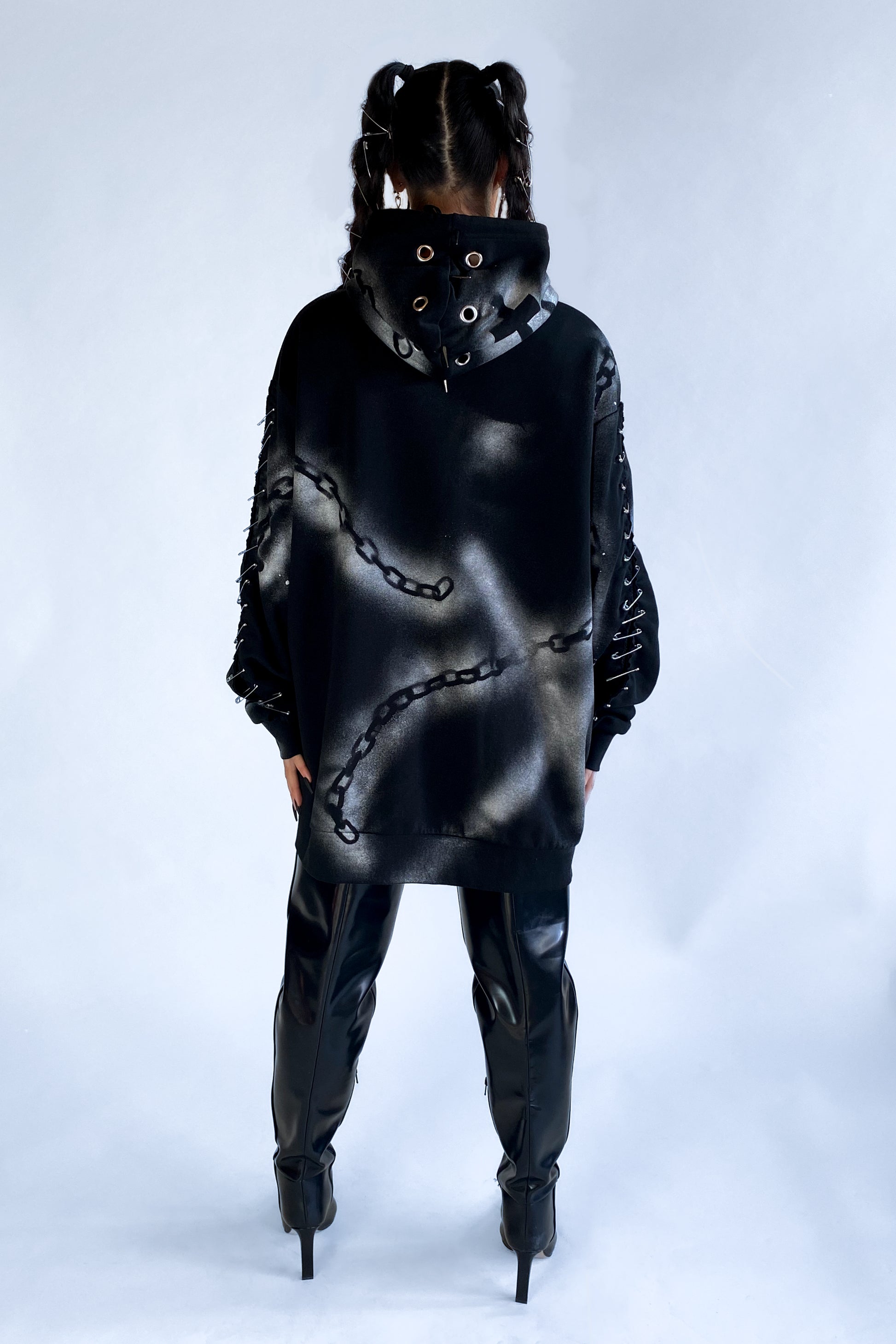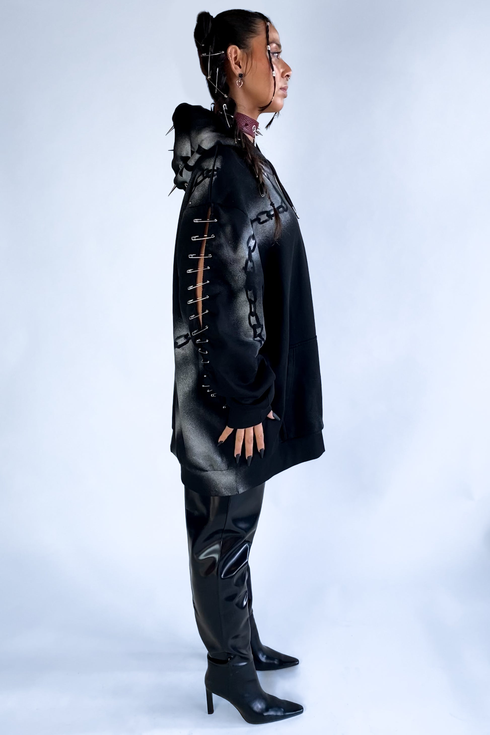 "Don't get chained up" Upcycled Deadstock Black/silver Hoodie