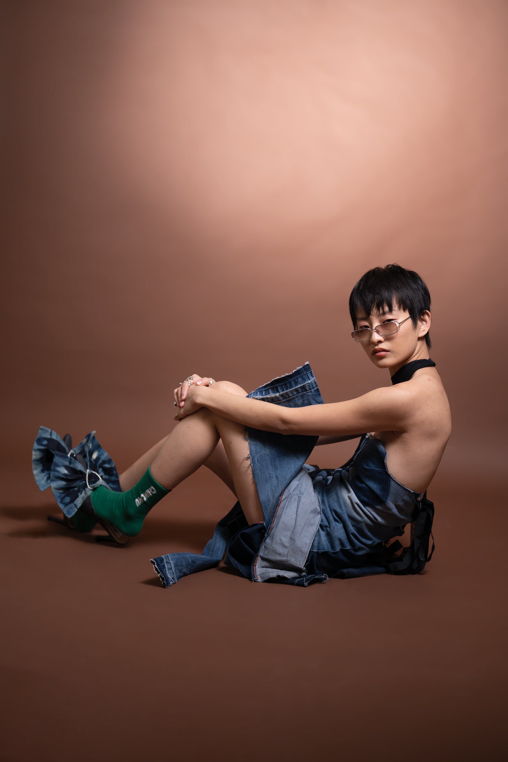 Meet Mucho Amor our handmade denim dress made from a old denim legparts. Strech denim with adjustable lace up back.