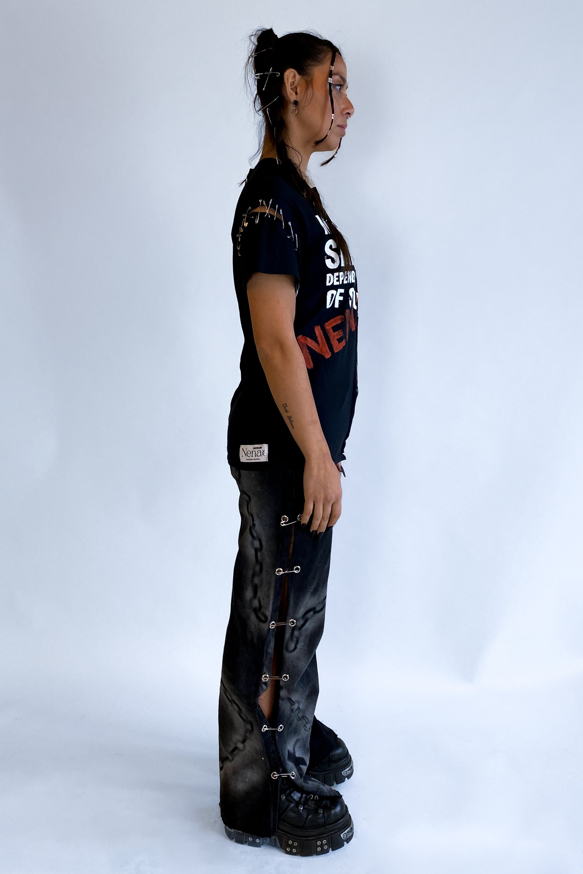 This one-of-one piece is perfect for those who want to make a bold statement and stand out from the crowd. Whether you’re into rock culture or sarcasm (or both), this tee has it all.