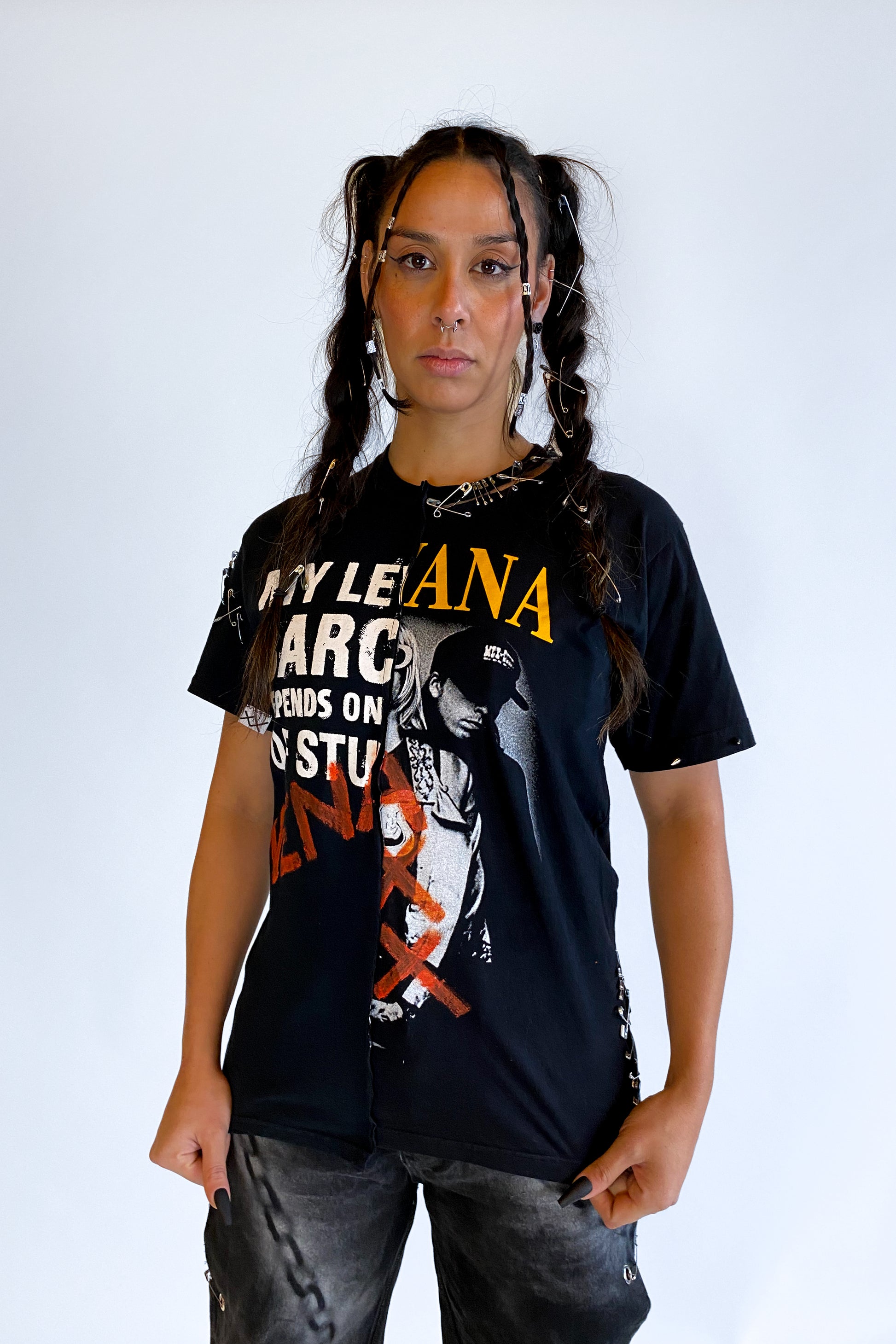 Custom Nirvana/Sarcasm Upcycled T-shirt - Where Two Worlds Collide
