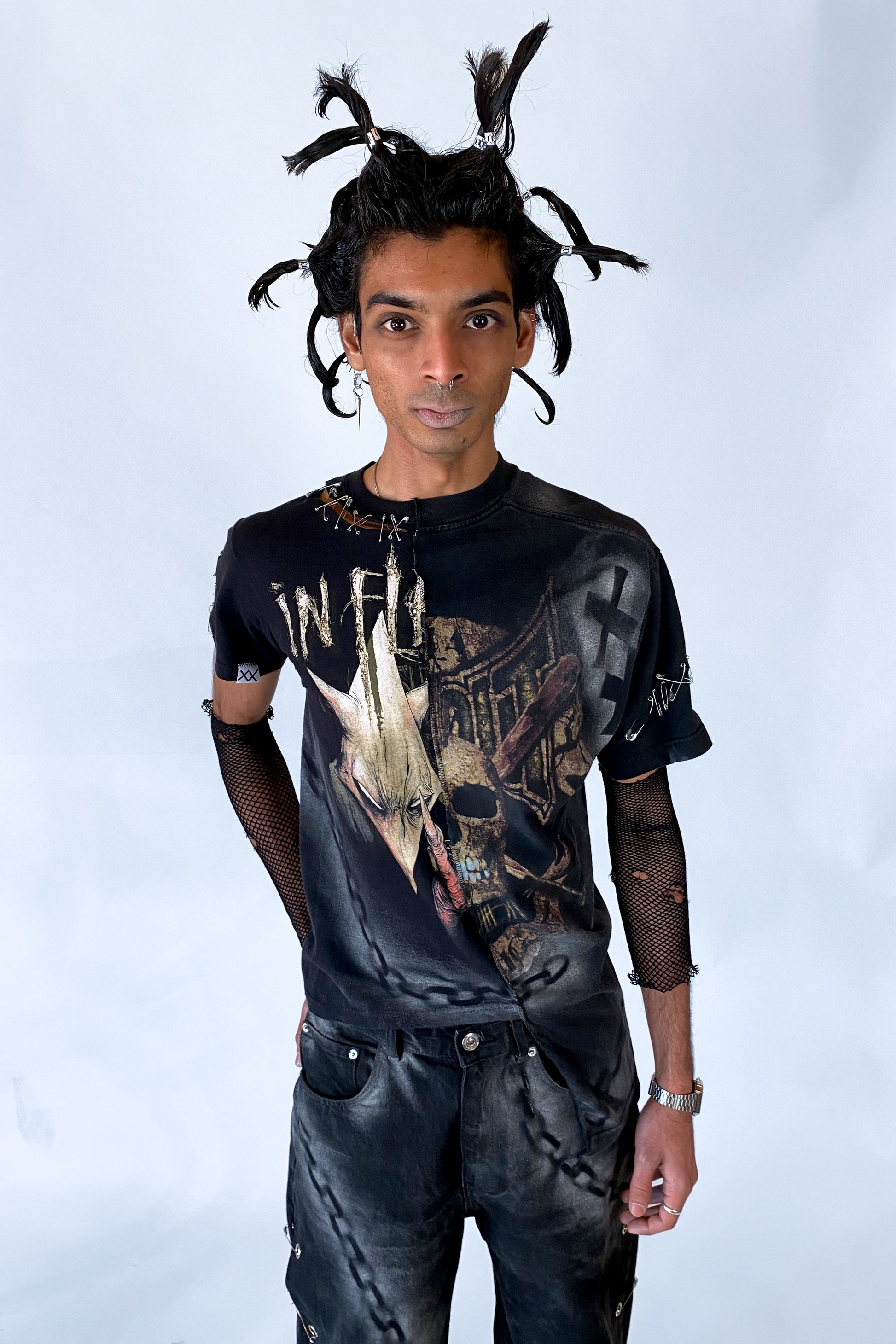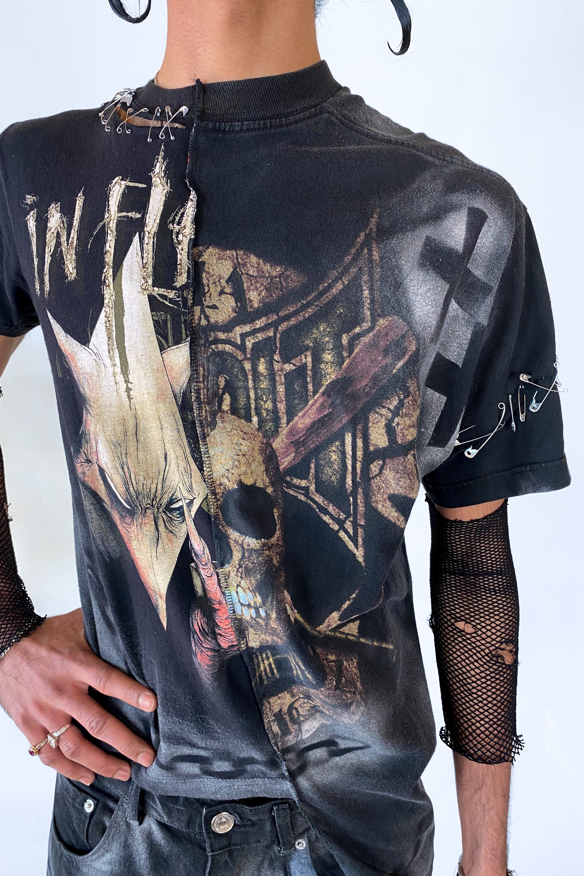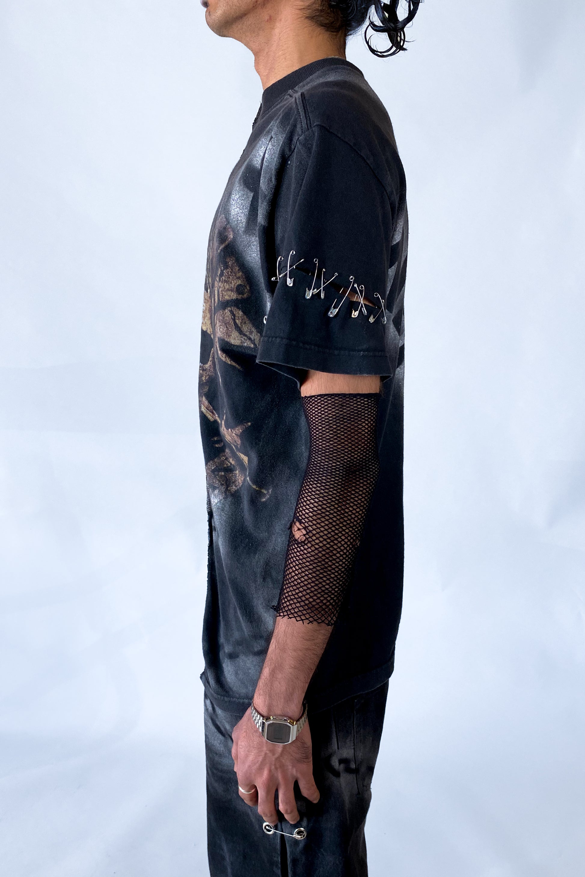 This one-of-one piece is not for the faint of heart. Whether you're drawn to skull imagery, fantasy themes, or just love a unique, customized look, this tee is sure to make a statement.