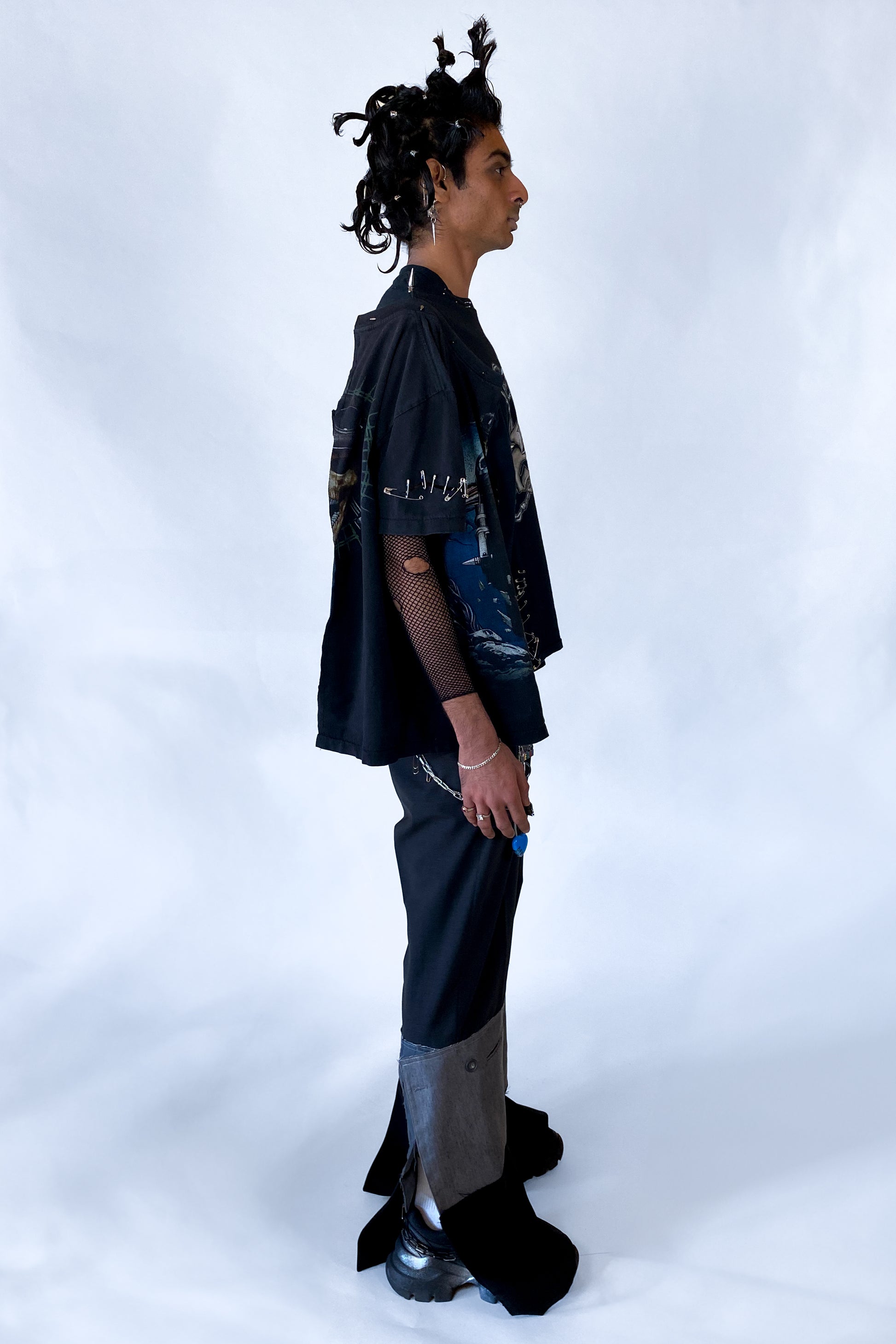 Stand out with the “Chain Gang” Upcycled Wide Leg Pantalon—where punk meets customization in a bold, one-of-a-kind design.