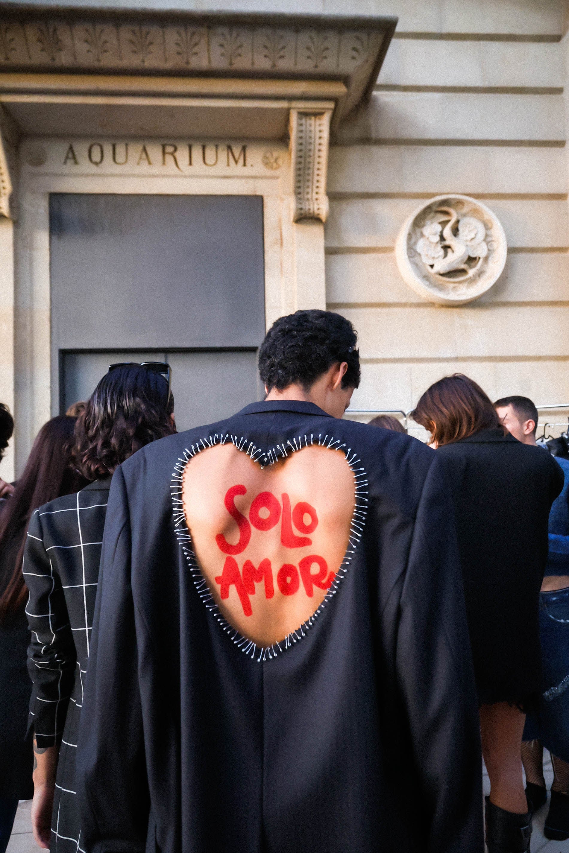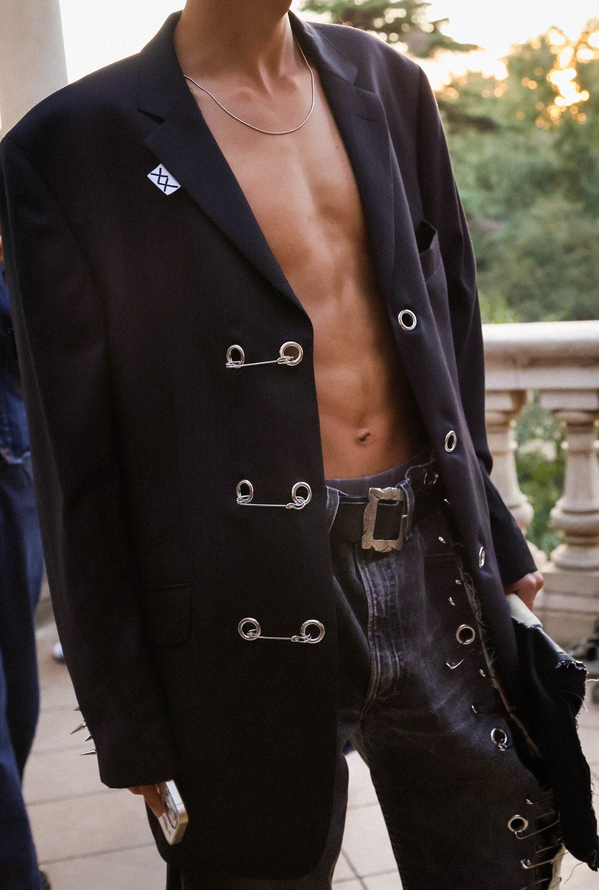 Meet Solo Amor our oversized reconstructed♻️ blazer. We cut out a heart shape at the back and added our signature safety pins at the edges. We also added spikes on the cuffs and safetypin/eyelet closure at the front🧷✂️❤️🔥🪡🧵♻️🖤